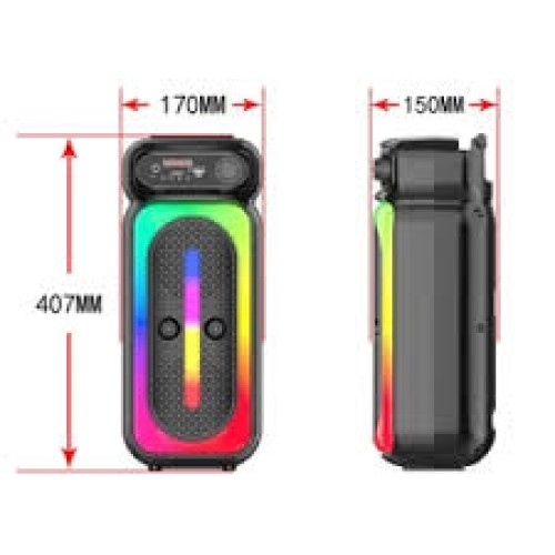 Brodu BTS-2173 Bluetooth կարաոկե բարձրախոս – 8 դյույմ RGB լույսերով և միկրոֆոնի աջակցությամբ